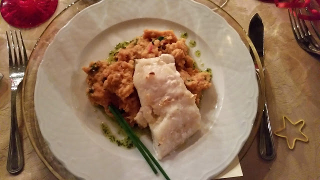 Montes e montes de gente (eramos quase 200 pessoas)! Lá fomos para o nosso cantinho, com os garçons sempre a oferecer bebida e canapés! Logo passamos para dentro do salão, o big boss fez uma pequena apresentação do grupo e passamos a comida! Sopa servida em copos de shot, mas digamos que o prato principal compensou, açorda de tomate com bacalhau fresco confitado, estava uma delicia! Por ultimo fechou com um leito creme queimado, também bastante bom.
