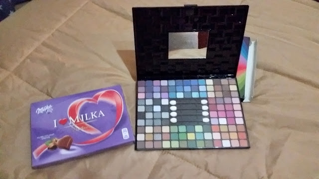 Palete de sombras e chocolates Milka da Amiga Filipa da faculdade!